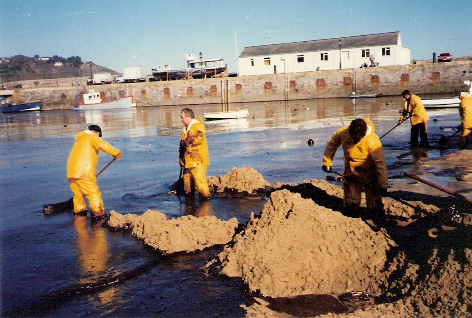 Volunteers cleaning Tenby's Harbour Beach after the oil spill in 1996. Scott Grant, CC BY-NC-NDI grew up on the beaches of Pembrokeshire in south-west Wales. Visits to Tenby were my family’s summer ritual: sand between our toes, paddling in rockpools, strawberry syrup on ice...